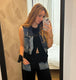 Un denim vissuto, trasgressivo che seduce e provoca: strappato sì ma mai a caso e mai eccessivamente. Noi, appassionati di questo materiale abbiamo voluto unire trasgressione e eleganza per poterlo vivere in ogni momento. Denim e inserti in paillettes. Chiusura centrale. Un denim usé, transgressif qui séduit et provoque : déchiré...